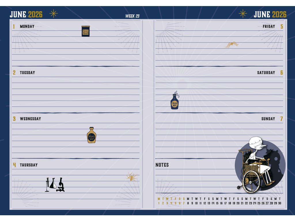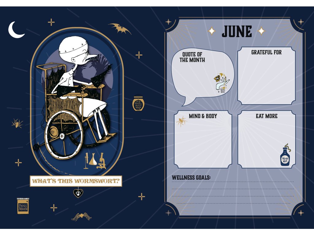 Celoroční praktický plánovací A5 diář s obrázky a grafikou amerického loutkově animovaného muzikálu The Nightmare Before Christmas (Ukradené Vánoce).