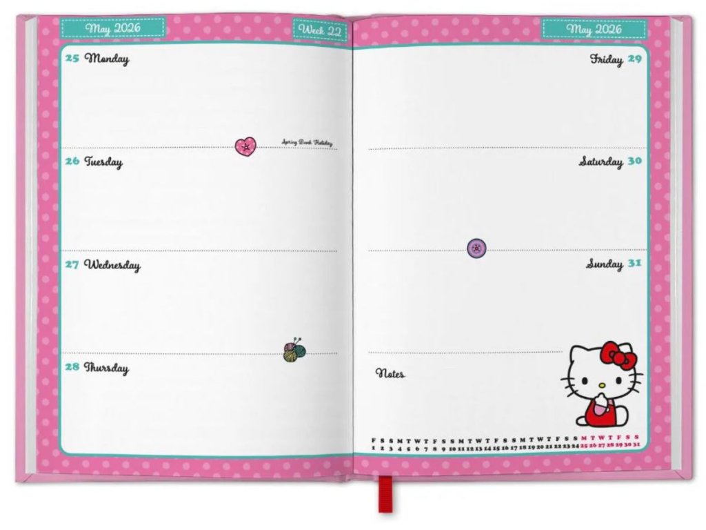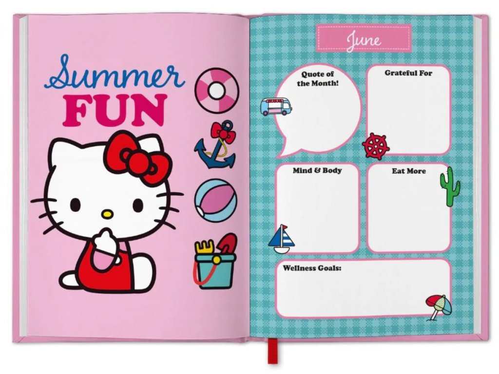 Celoroční praktický plánovací A5 diář s obrázky a grafikou Hello Kitty.