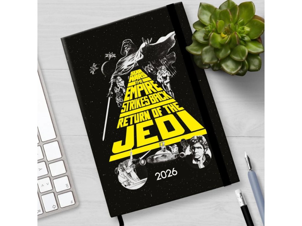 Celoroční praktický plánovací A5 diář s obrázky a grafikou filmové ságy Star Wars.