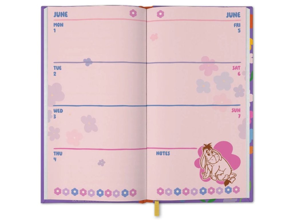 Celoroční praktický plánovací malý, týdenní slim diář s obrázky a grafikou oslíka Ijáčka z knížek a filmů Medvídek Pú.