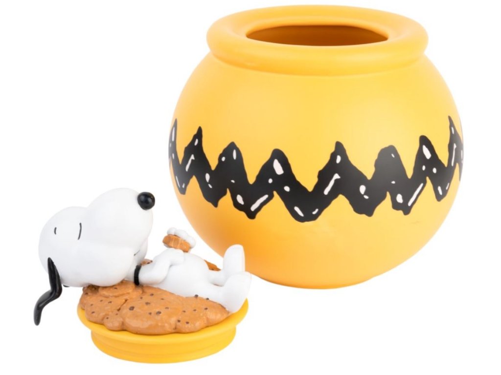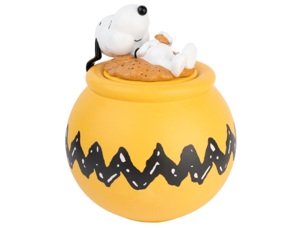 Udržujte své sušenky, sladké pochoutky a další výrobky čerstvé s touto nádobou na sušenky. Tato dóza je vyhotovená do grafiky spícího Snoopyho, díky čemuž ji okamžitě rozezná každý fanoušek této roztomilé psí postavy. Tuto praktickou skladovací nádobu můžete také použít k uložení jiných suchých ingrediencí.