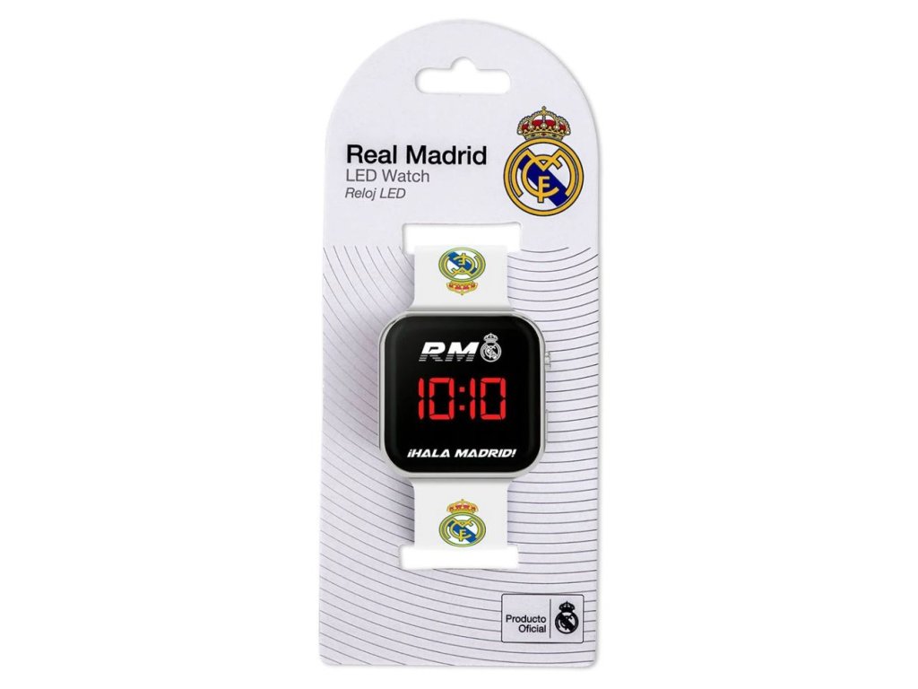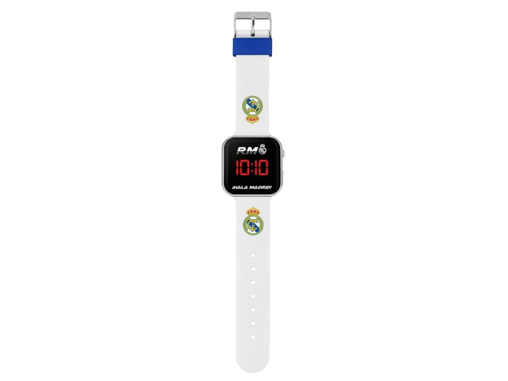 Stylové dětské digitální hodinky s motivem slavného fotbalového klubu Real Madrid potěší každého fanouška. Moderní černý displej s kovovým rámečkem a výrazným červeným podsvícením zajišťuje snadné čtení času. Sportovní design dodává hodinkám jedinečný vzhled a je vhodný jako luxusní doplněk každého outfitu. Pohodlný silikonový řemínek je lehký, příjemný na nošení a přizpůsobí se dětskému zápěstí. Hodinky jsou ideální do školy, na trénink i na běžné nošení - malý fanoušek tak může mít svůj oblíbený tým stále u sebe. Skvělý tip na dárek pro všechny malé milovníky fotbalu, kteří chtějí ukázat, komu fandí.