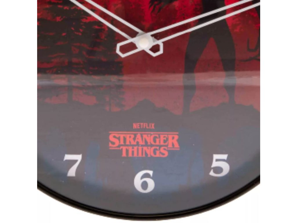 Oficiální produkt - nástěnné hodiny z katalogu zboží s grafikou a licencí populárního mysteriózního hororového seriálu Stranger Things od společnosti Netflix.