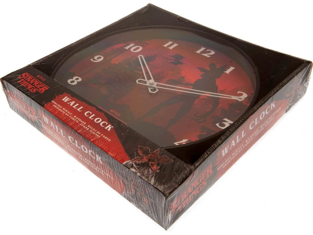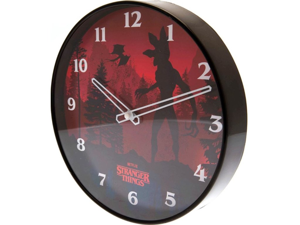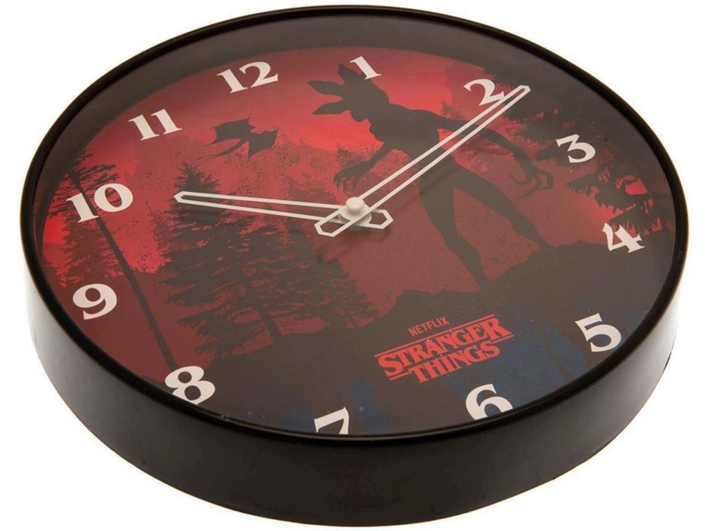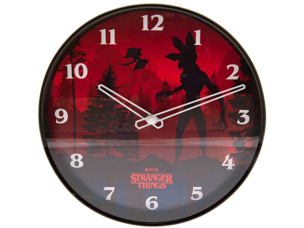 Oficiální produkt - nástěnné hodiny z katalogu zboží s grafikou a licencí populárního mysteriózního hororového seriálu Stranger Things od společnosti Netflix.