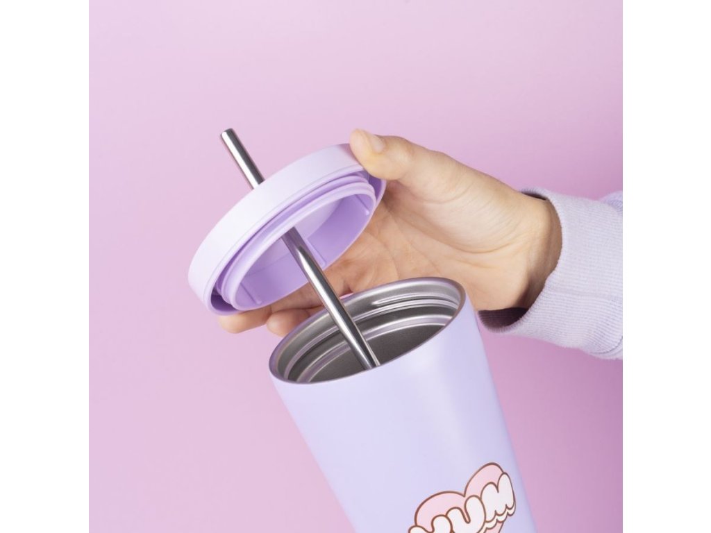 Roztomilý dvoustěnný hrnek z nerezové oceli, který udrží váš nápoj horký 4 hodiny a studený 8 hodin. Měří 18,5 cm na výšku a 10 cm v průměru a nabízí objem 550 ml. Součástí je vzduchotěsný uzávěr, kovové brčko a nástroj na čištění brčka.