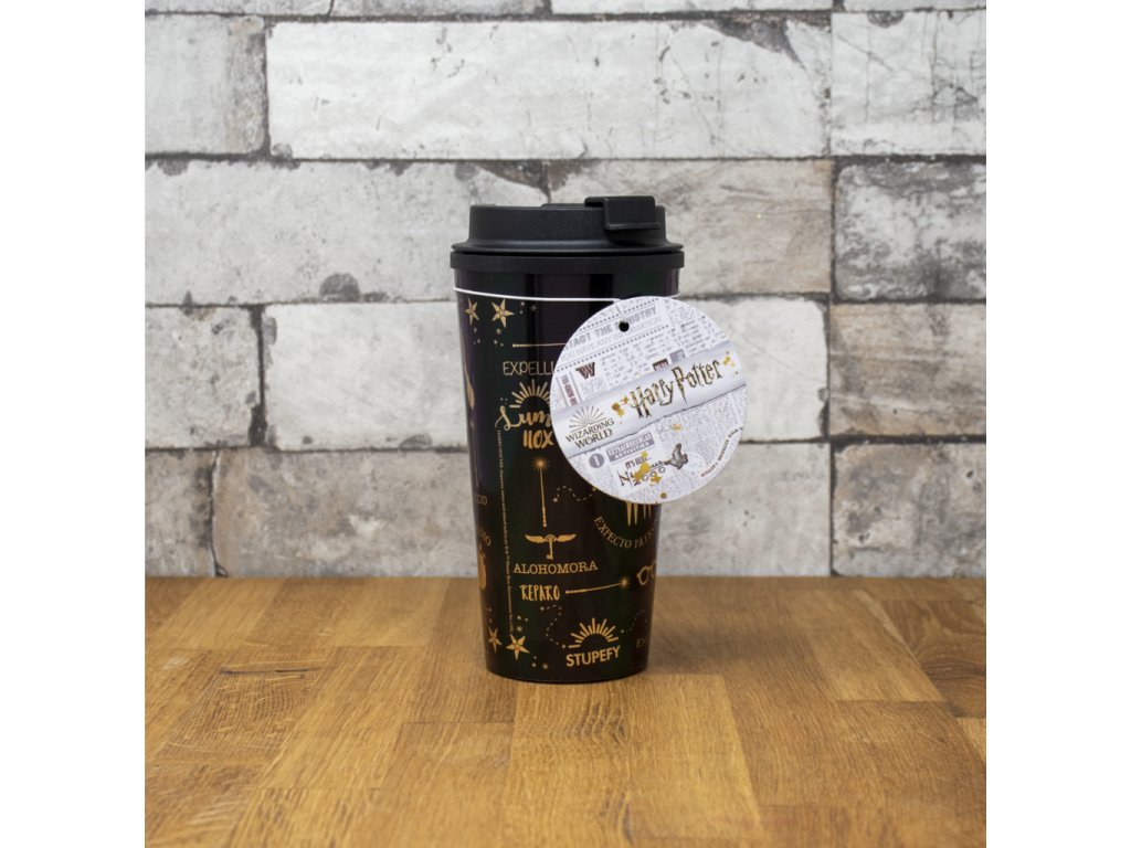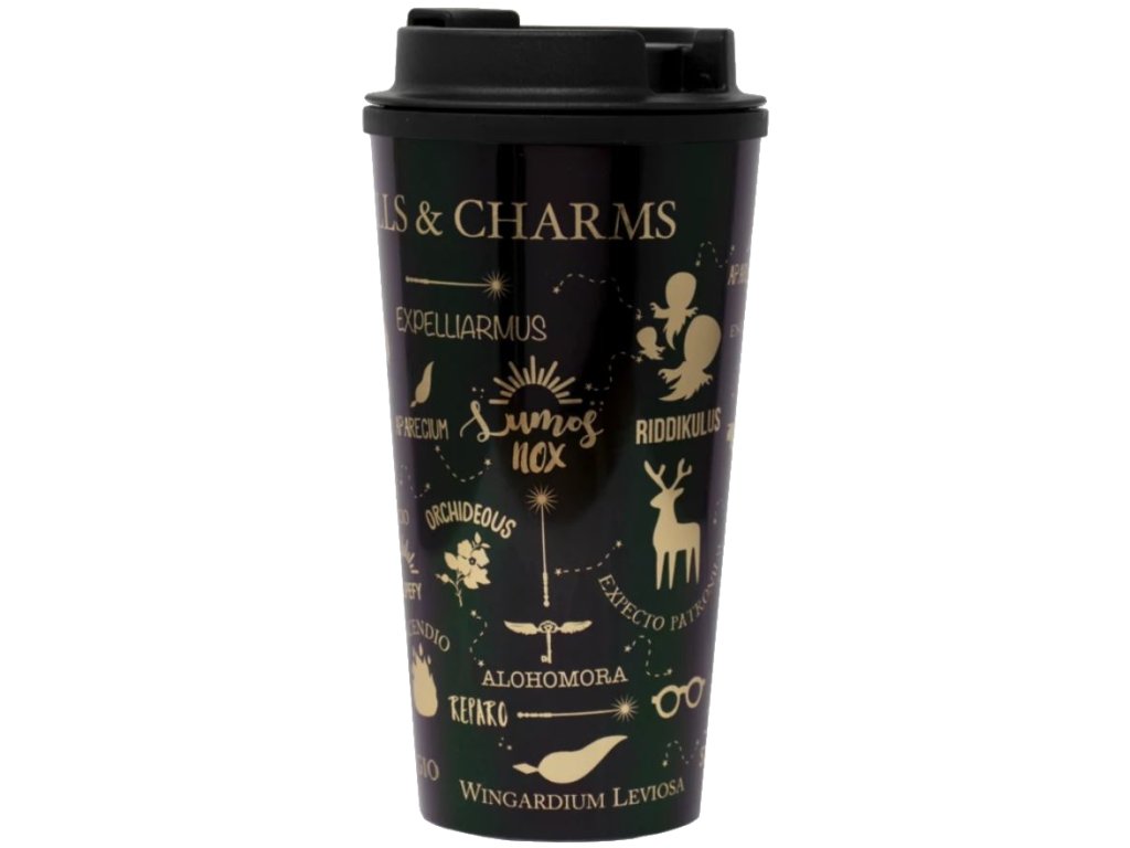 Cestovní hrnek s víčkem inspirovaný kouzly a zaklínadly ze ságy Harry Potter.