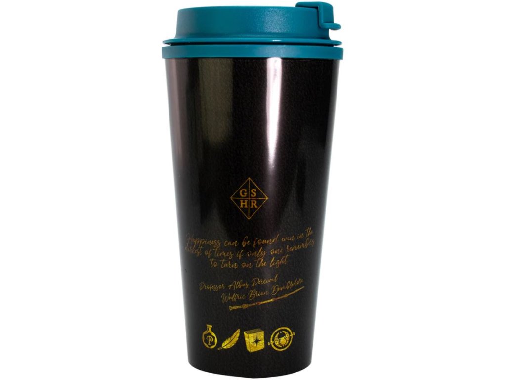 Černý cestovní hrnek s motivem a tématikou Zpátky do Bradavic z filmové ságy Harry potter. Uchová teplotu horkého nápoje víčkem s dobře těsnícím zajištěním otvoru pro pití nápoje. Pogumovaný podklad pro protiskluz. Hrnek je vhodný pro každého menšího i většího cestovatele.