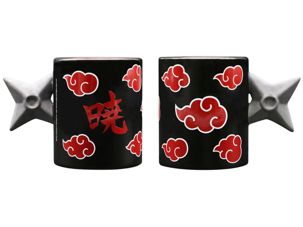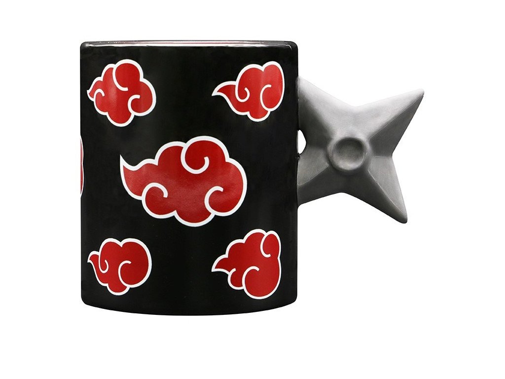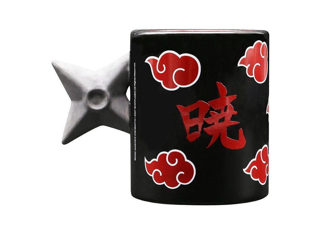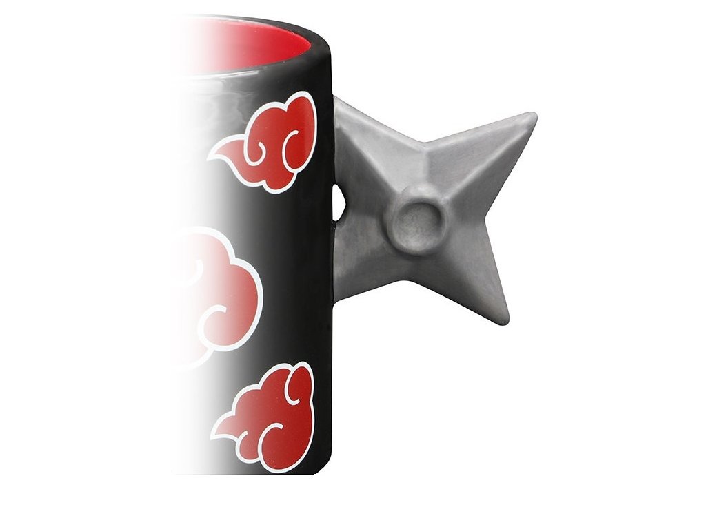 Černý keramický 3D hrnek s grafikou červených ikonek AKatsuki ze seriálu Naruto Shippuden. Tento 3D hrnek Naruto Shippuden s uchem ve tvaru vrhacích hvězdic vám umožní pít váš oblíbený nápoj a zároveň vzdát hold ninjům z Konohy. Hrnek je dodáván v krabičce se stejnou grafikou, a proto je skvělým dárkem pro všechny menší i větší fanoušky Naruta.