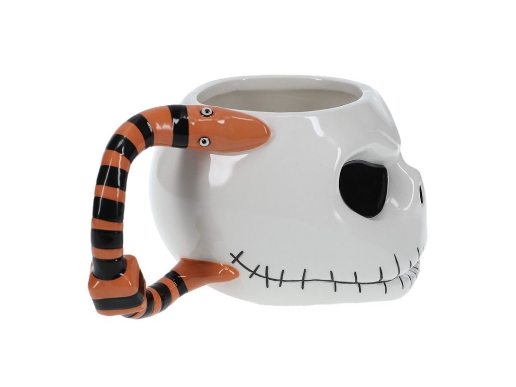 Usrkejte svůj ranní nápoj z hlavy dýňového krále s tímto hrnkem ve tvaru Jacka Skellingtona. Keramický hrnek o objemu 400 ml (13 fl oz) má tvar lebky Jacka Skellingtona. Rukojeť tvoří oranžovo-černý pruhovaný vzor hada z filmu Tima Burtona. Hrnek Jacka Skellingtona je ideální pro fanoušky předvánoční noční můry.