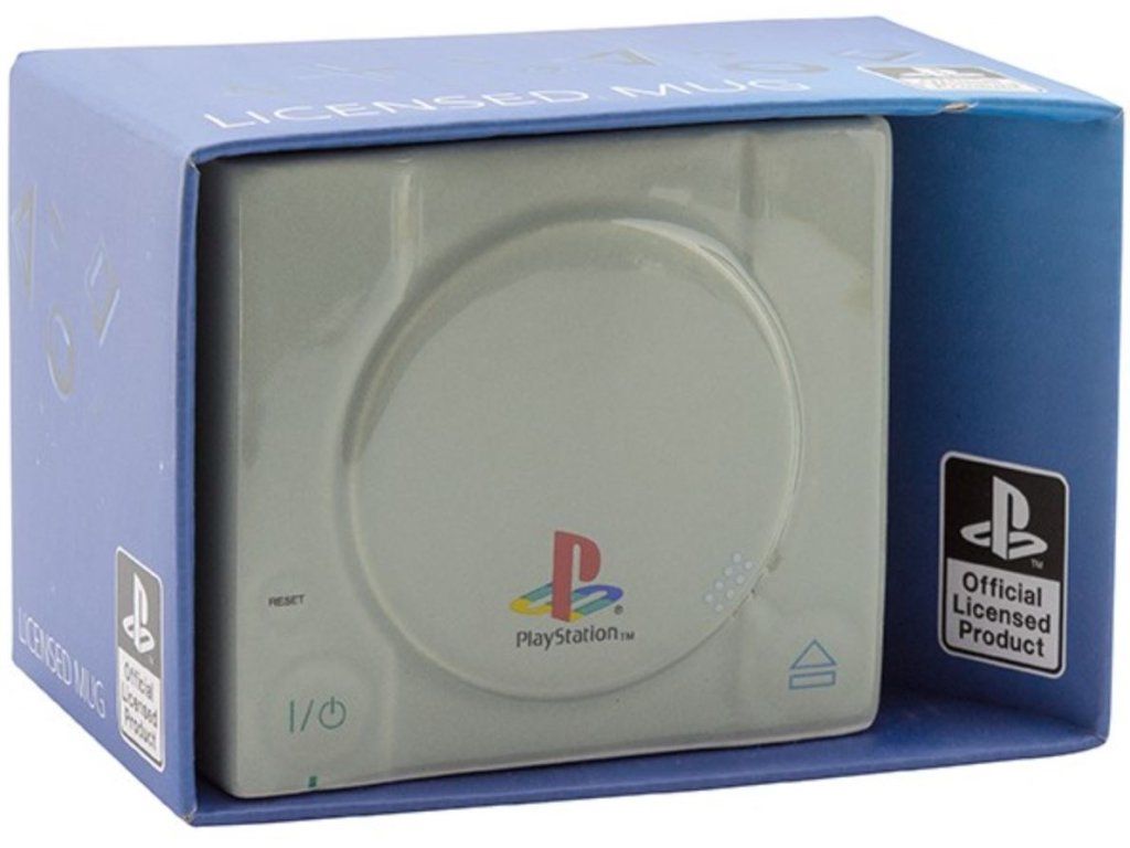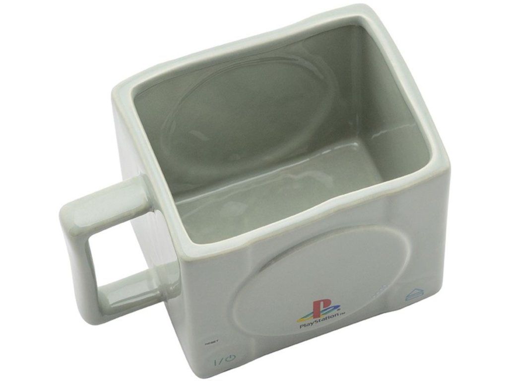 Šedý keramický hrnek ve tvaru kostky, je vzpomínka na první PlayStation konzoli, která vyšla roku 1994. Na dvou stranách se nachazí přesná replika console i s jejími tlačítky jako je reset, tlačítko vypnutí a zapnutí a také napodobenina prostoru pro vložení hry.