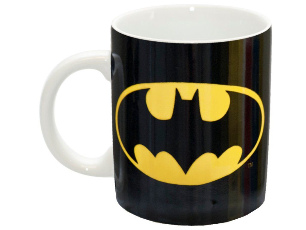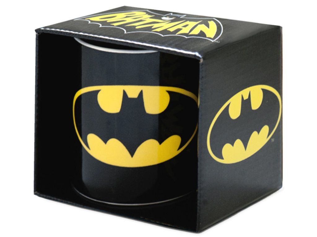 Oficiální hrnek a doplňkové zboží z katalogu produktů s logem a grafikou komiksového hrdiny Batmana a společnosti Warner Bros.