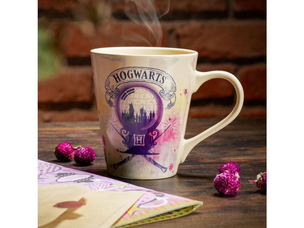 Tento nádherný hrnek... Tyto krásné barvy... Nádherný hrad Bradavice v křišťálové kouli... Lektvar amortentia ve tvaru srdce... Ne, slibujeme! Nenutili jsme vás vypít lektvar lásky, abyste se do tohoto hrnku zamilovali! Tento hrnek je prostě jen velmi graficky hezky zpracovaný a zamiluje se do něj každý větší i menší fanoušek Harryho Pottera.