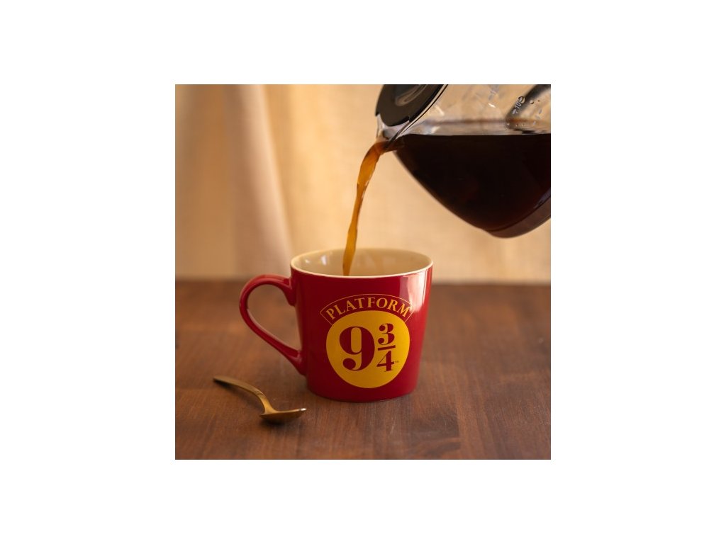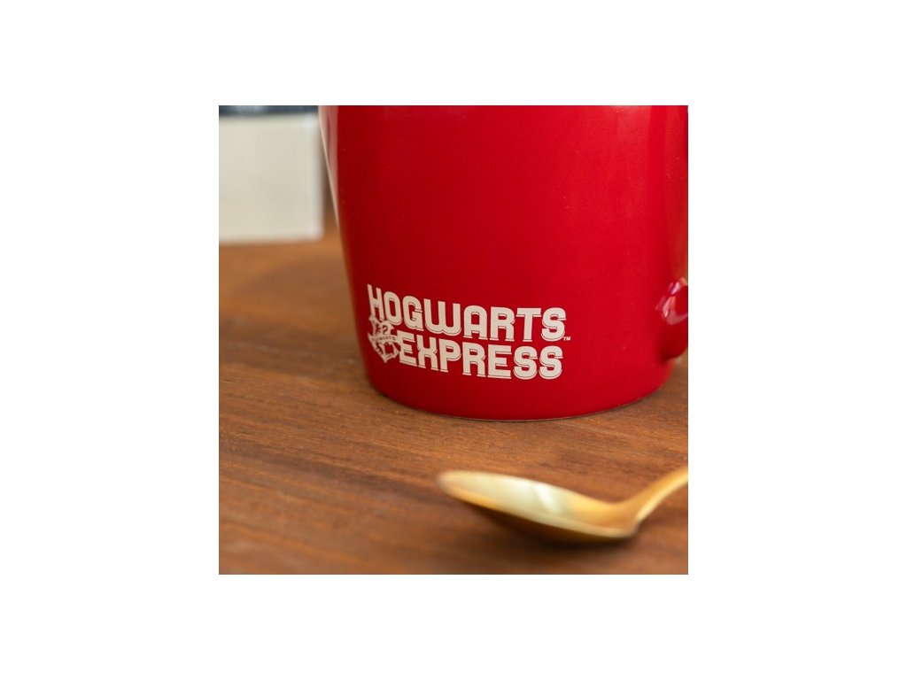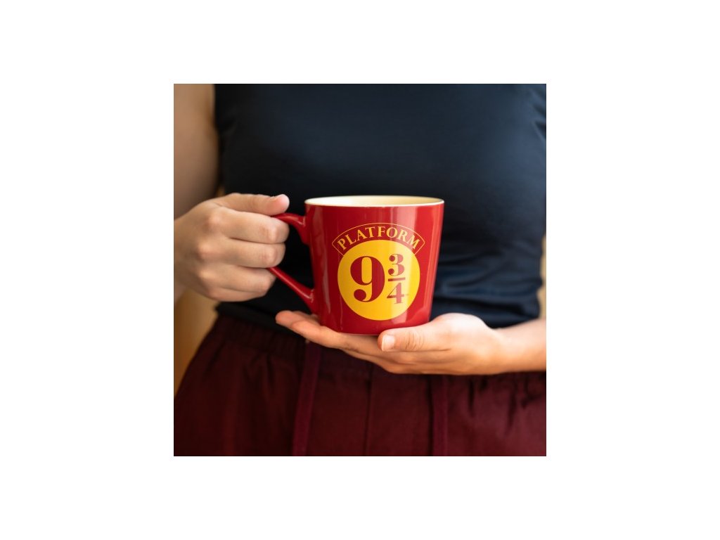 Hrnek vyvedený v červené barvě s grafikou oranžového loga nástupiště 9 a 3/4, které můžete znát ze ságy Harryho Pottera. Hrníček je balen a dodáván v papírové krabičce s designem ságy Harryho Pottera.