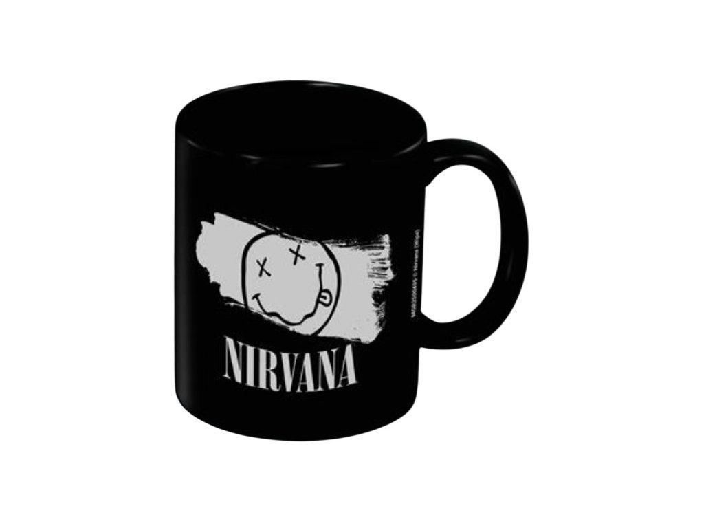 Oficiální produkt - hrnek a doplňkové zboží z katalogu výrobků s logem, fotografiemi, grafikou americké grungeové kapely Nirvana.
