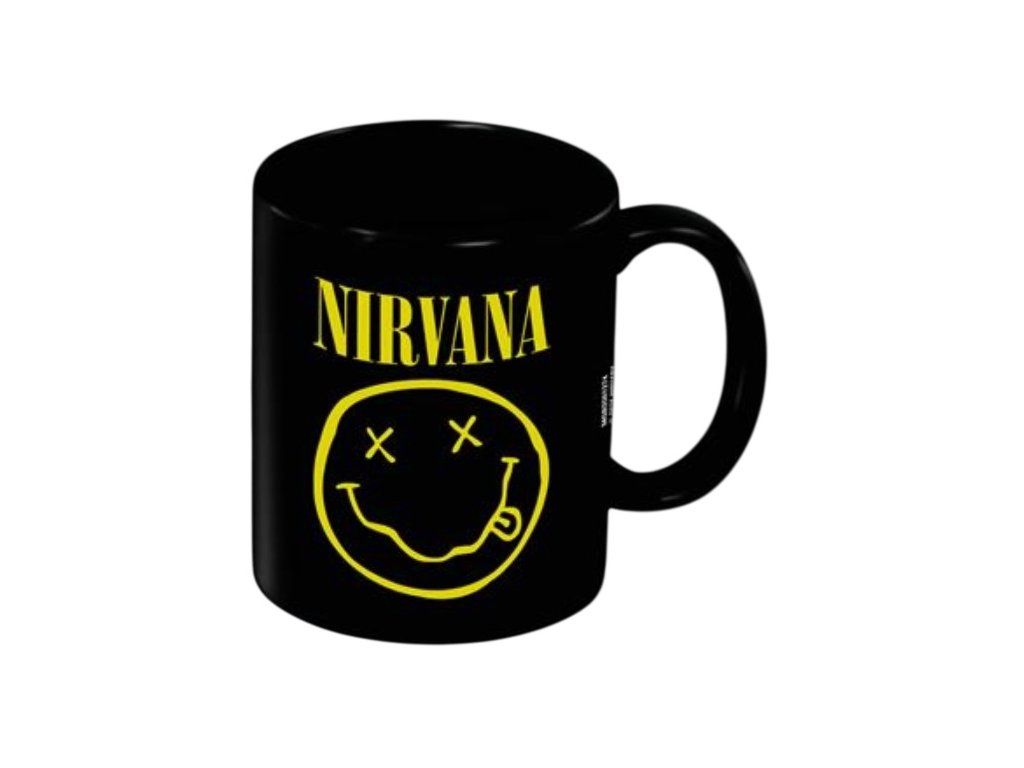 Oficiální produkt - hrnek a doplňkové zboží z katalogu výrobků s logem, fotografiemi, grafikou americké grungeové kapely Nirvana.