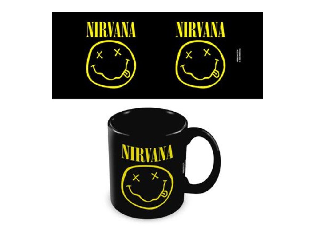 Tento keramický hrnek, který tvoří žlutý nápis "NIRVANA" a charakteristické logo Smiley Face (vyplazený jazyk a oči ve tvaru X) na černém podkladu dodá vašemu rannímu rituálu jedinečnou atmosféru a oživí každý pracovní stůl i domácnost. Hrnek je vyroben z odolné keramiky, která je vhodná pro každodenní používání a dlouhodobě si zachovává svůj vzhled. Perfektní na kávu, čaj nebo horkou čokoládu doma i v kanceláři. Skvělý tip na dárek pro fanoušky rockové hudby 90. let.