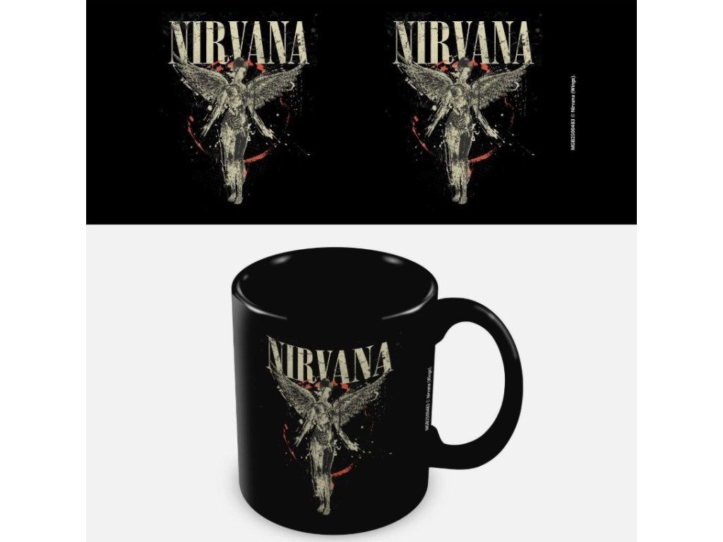 Tento keramický hrnek s motivem ikonického alba In Utero od legendární grungeové kapely Nirvana. Design tvoří postava anděla a nápis "NIRVANA" v charakteristickém fontu na černém pozadí, který dodá vašemu rannímu rituálu jedinečnou atmosféru a oživí každý pracovní stůl i domácnost. Hrnek je vyroben z odolné keramiky, která je vhodná pro každodenní používání a dlouhodobě si zachovává svůj vzhled. Perfektní na kávu, čaj nebo horkou čokoládu doma i v kanceláři. Skvělý tip na dárek pro fanoušky rockové hudby 90. let.