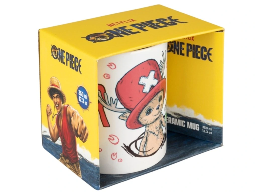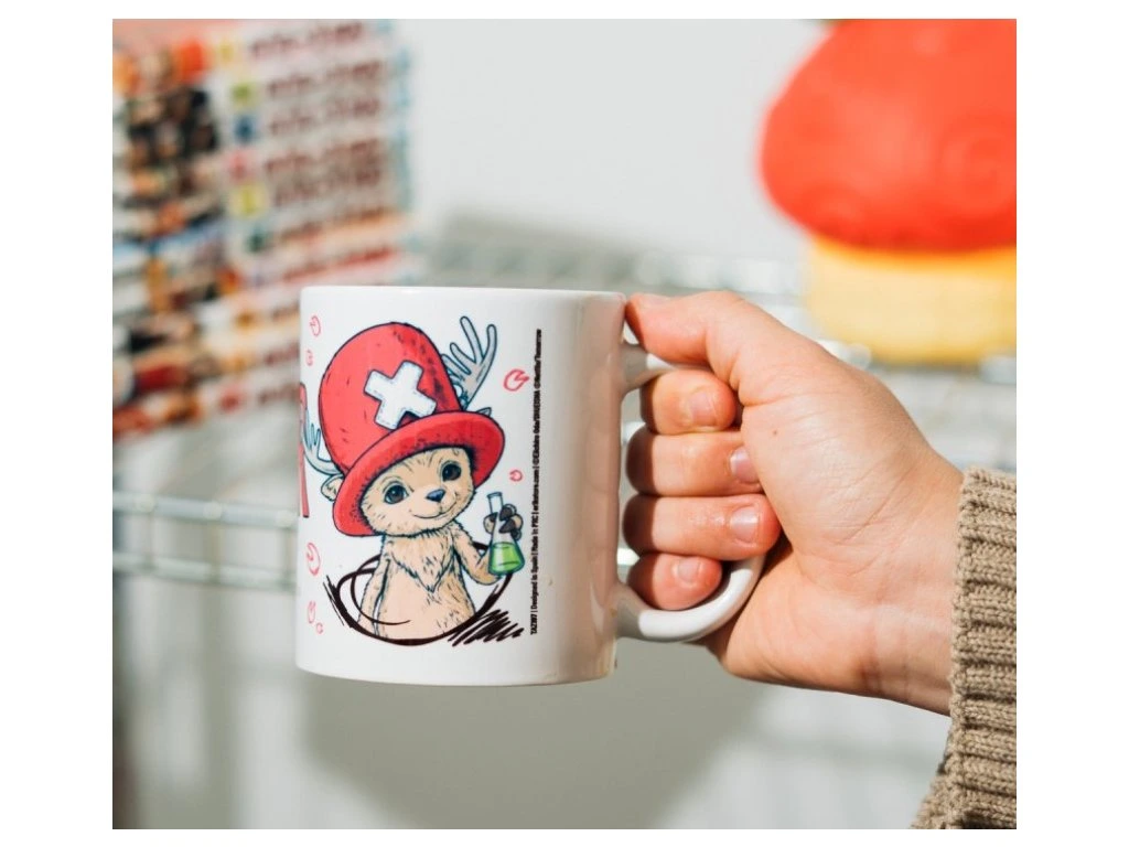 Roztomilý bílý keramický hrnek s grafikou oblíbené postavy Tony Tony Chopper z populární mangy a anime One Piece potěší každého fanouška tohoto legendárního světa. Detailní a hravý motiv dodává hrnku jedinečný charakter, který zpříjemní každé ráno. Hrnek je ideální na kávu, čaj i další oblíbené nápoje a skvěle poslouží doma, v práci i jako milý dárek pro malé i velké fanoušky.