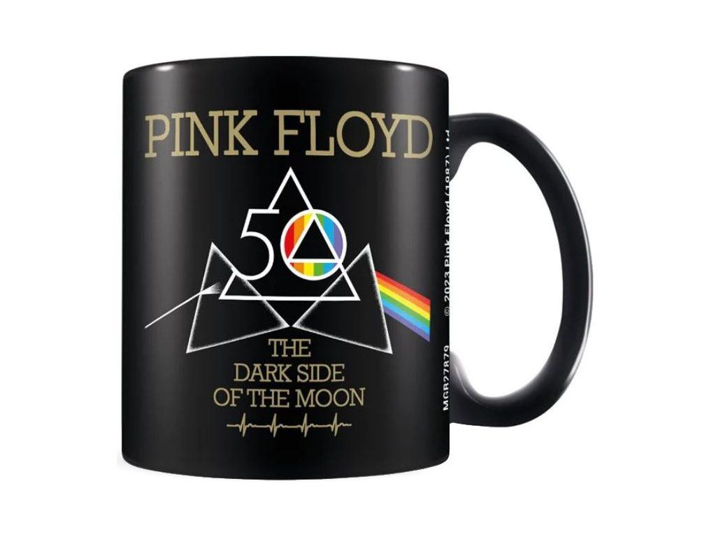 Černý keramický glazovaný hrnek s barevným potiskem Dark Side 50Th Unniversary (50. výročí Dark Side), alba slavné britské hudební skupiny Pink Floyd. Hrnek je vhodný pro všechny menší i větší hudební fanoušky.