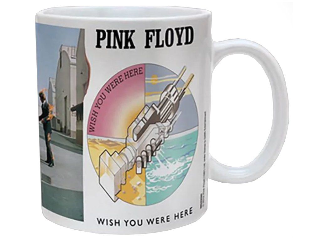 Oficiální hrnek a doplňkové zboží z katalogu produktů s logem, grafikou a fotografiemi brtiské rockové skupiny Pink Floyd