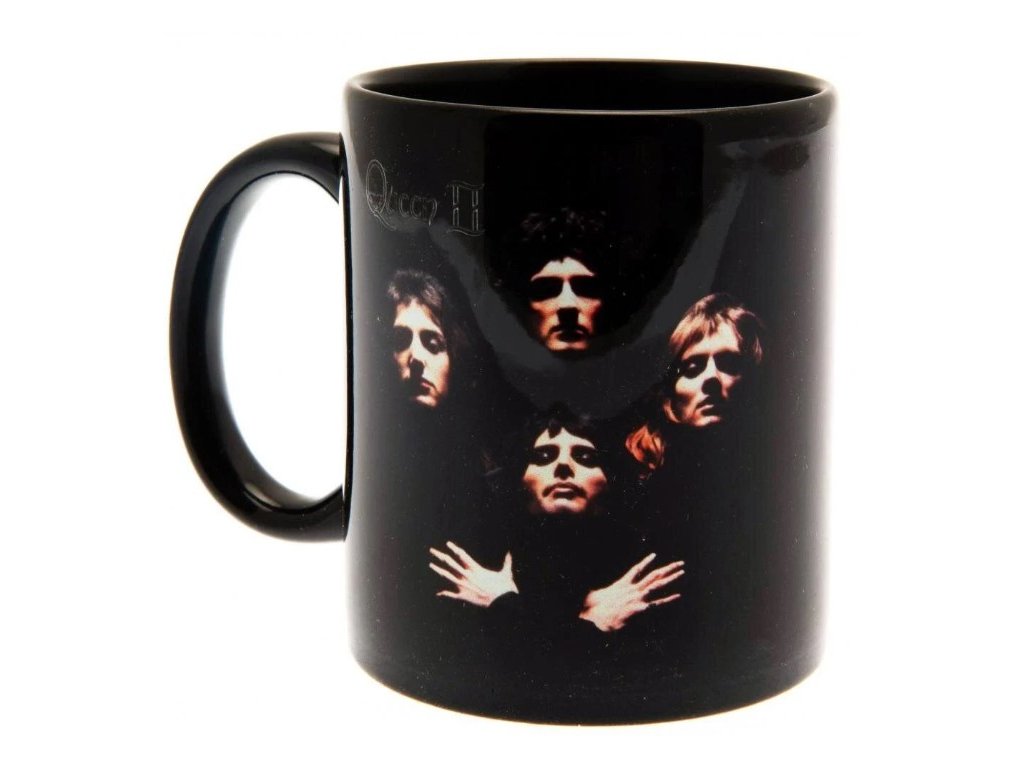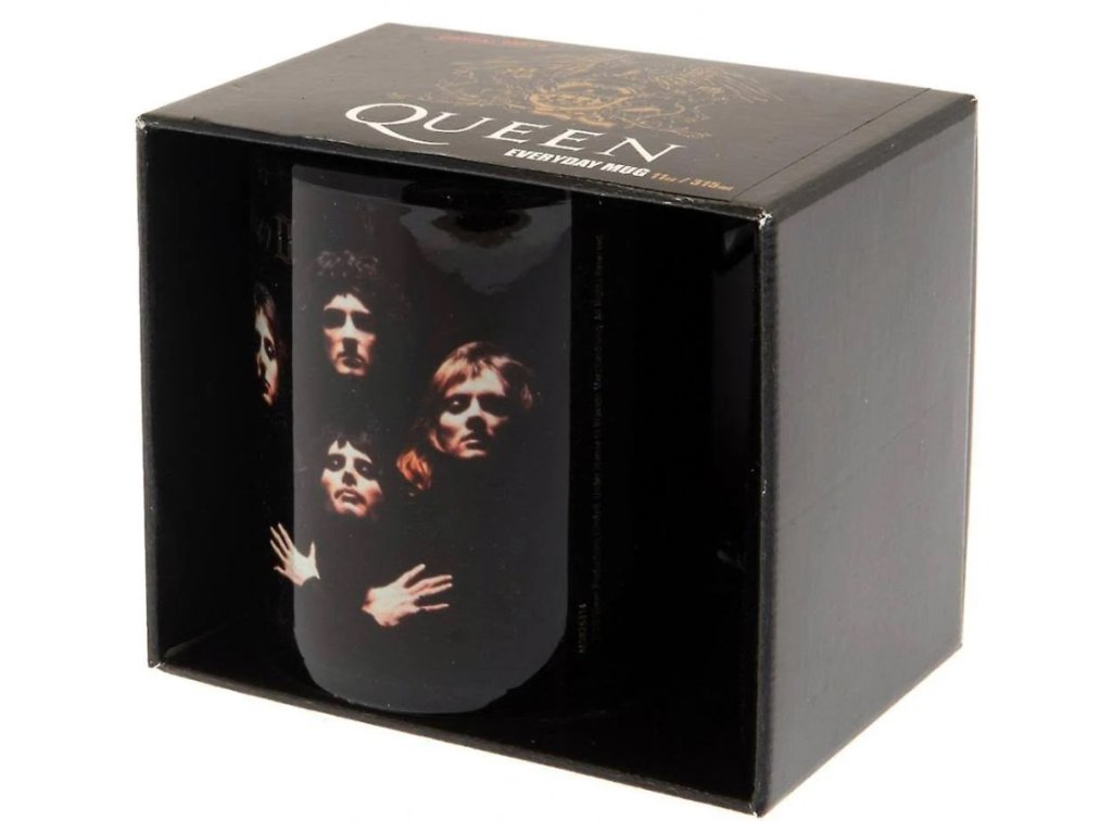 Oficiální hrnek a doplňkové zboží z katalogu produktů s licencí hudební skupiny Queen.