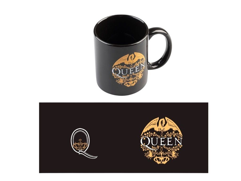 Tento keramický hrnek britské rockové skupiny Queen. Na černém podkladu je vyobrazeno ikonické logo Queen Crest v metalickém zlatém provedení. Logo, které navrhl sám Freddie Mercury, kombinuje znamení zvěrokruhu všech čtyř členů kapely. Zabaleno v papírové - kartonové krabičce také s grafickým