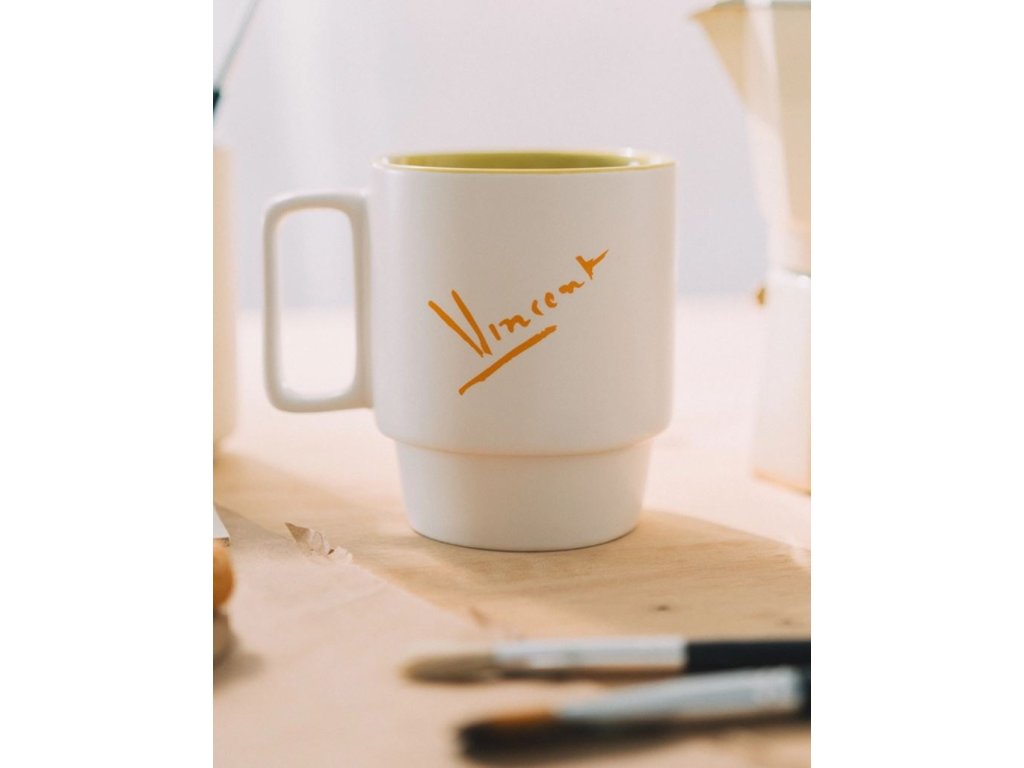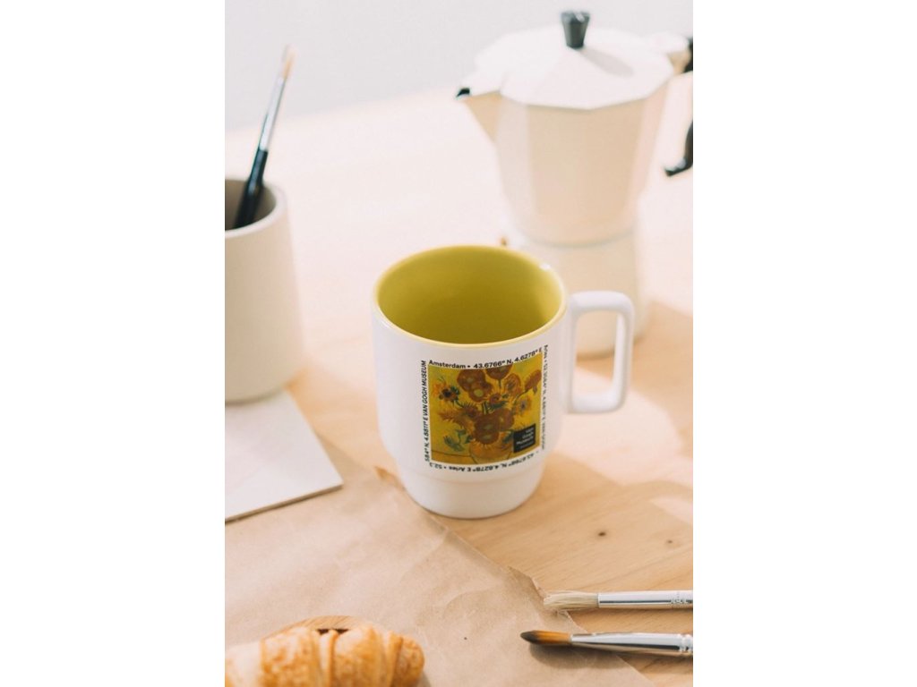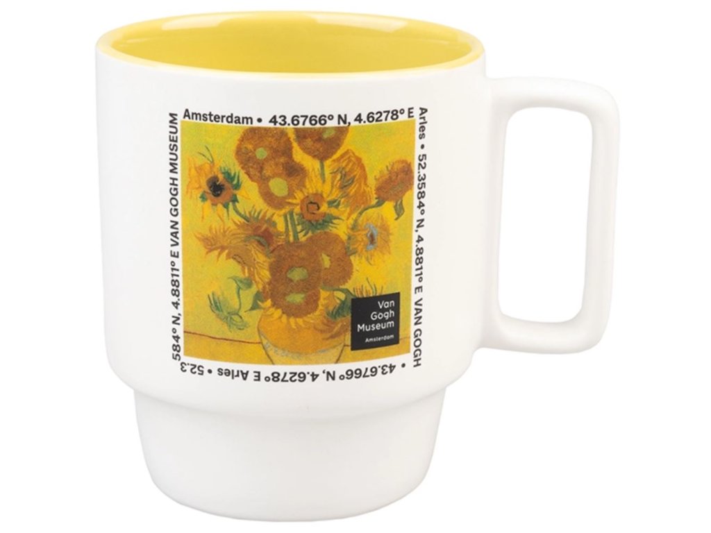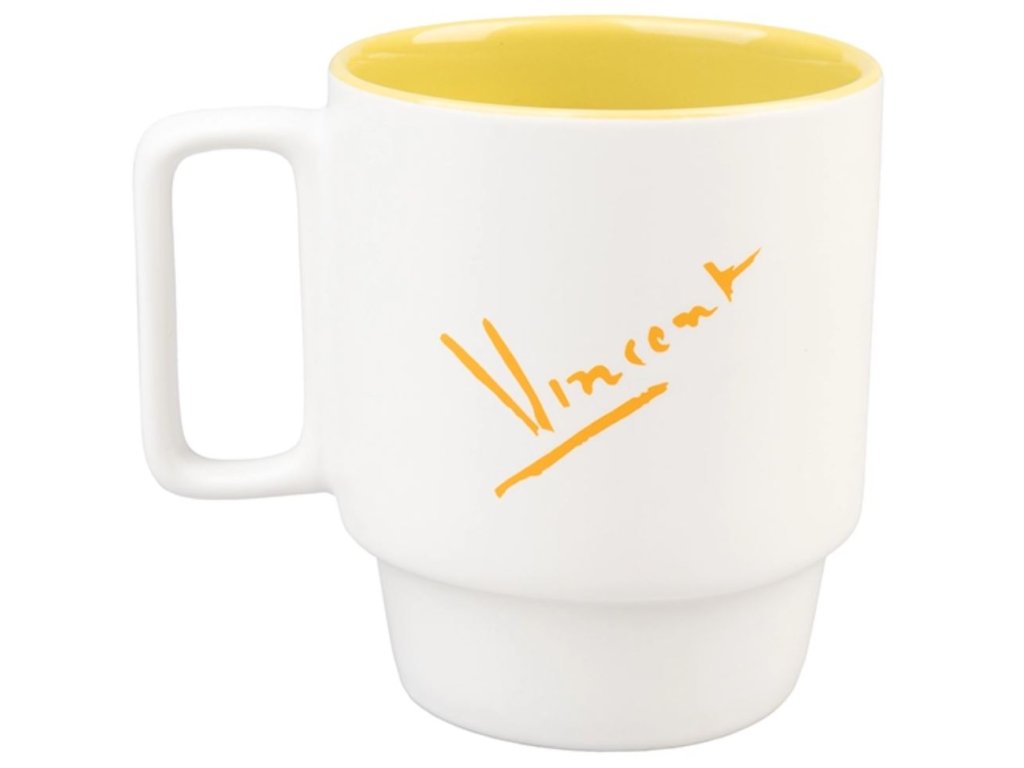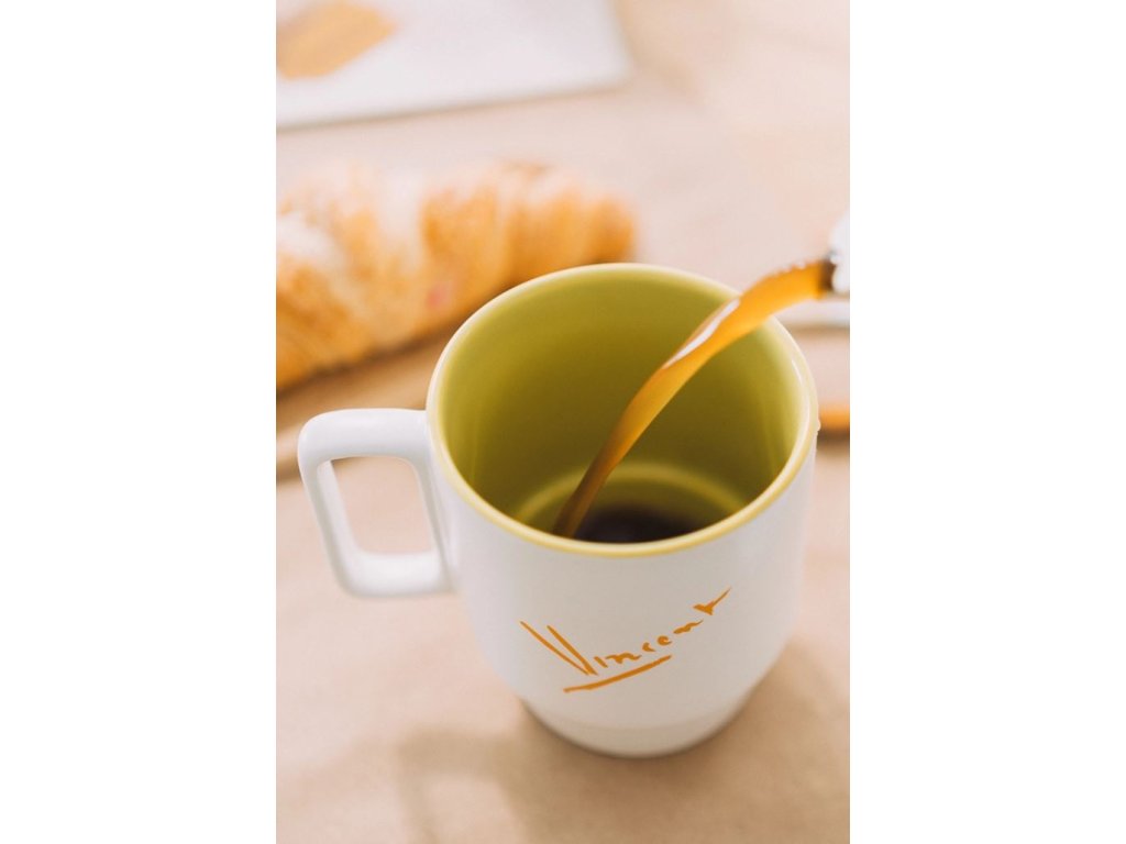 Žluto-bílý keramický hrnek vyvedený v motivu maleb známeho holandského malíře Vincenta van Gogha. Hrníček je vhodným dárkem pro všechny milovníky umění nejen od tohoto malíře.