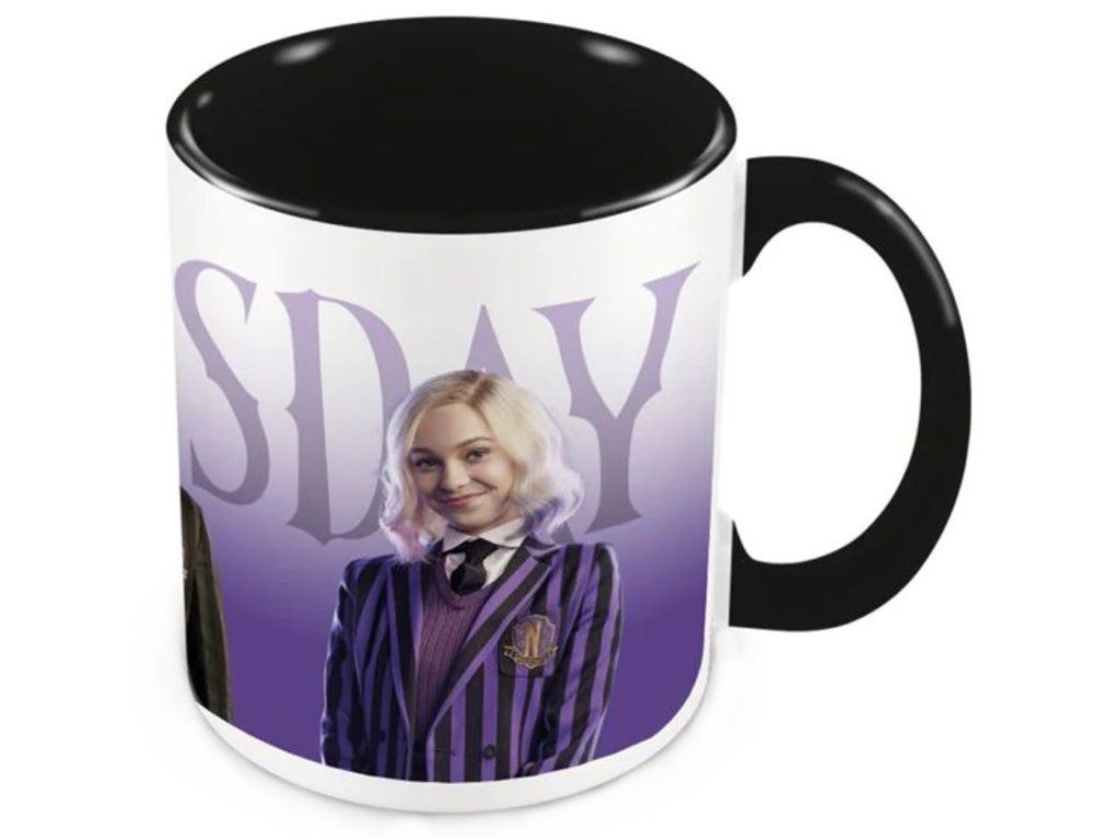 Oficiální produkt - keramický hrnek z katalogu výrobků s grafikou a licencí populárního amerického nadpřirozeného seriálu Wednesday od společnosti Netflix.