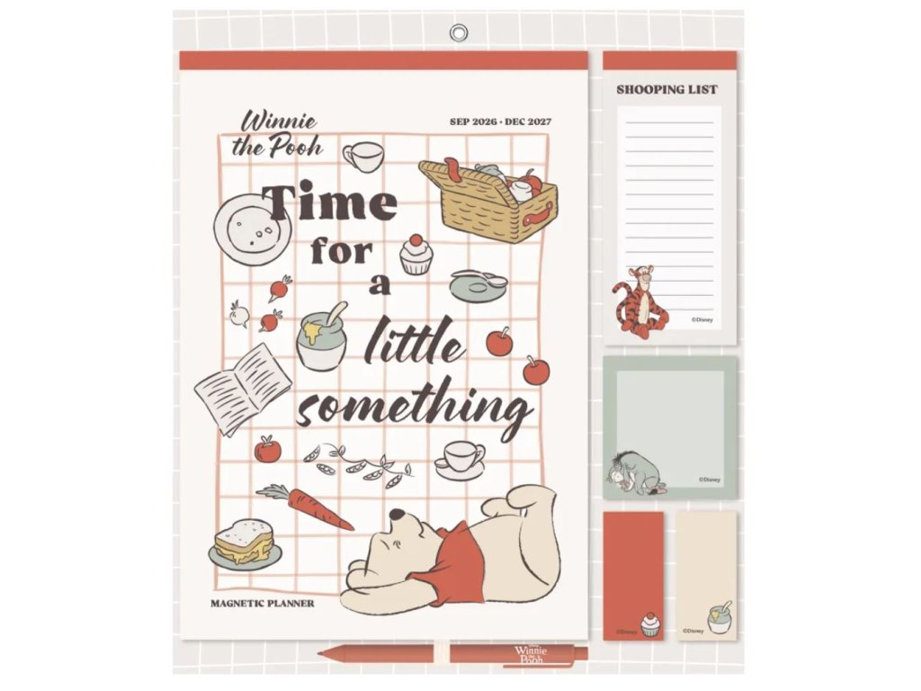 Oficiální produkt - šestnáctiměsíční plánovací kalendář a organizér na rok 2026/2027 z katalogu výrobků s licencí a grafikou postav z kreslené pohádky Winnie The Pooh ( Medvídek Pů) od filmového studia Disney.