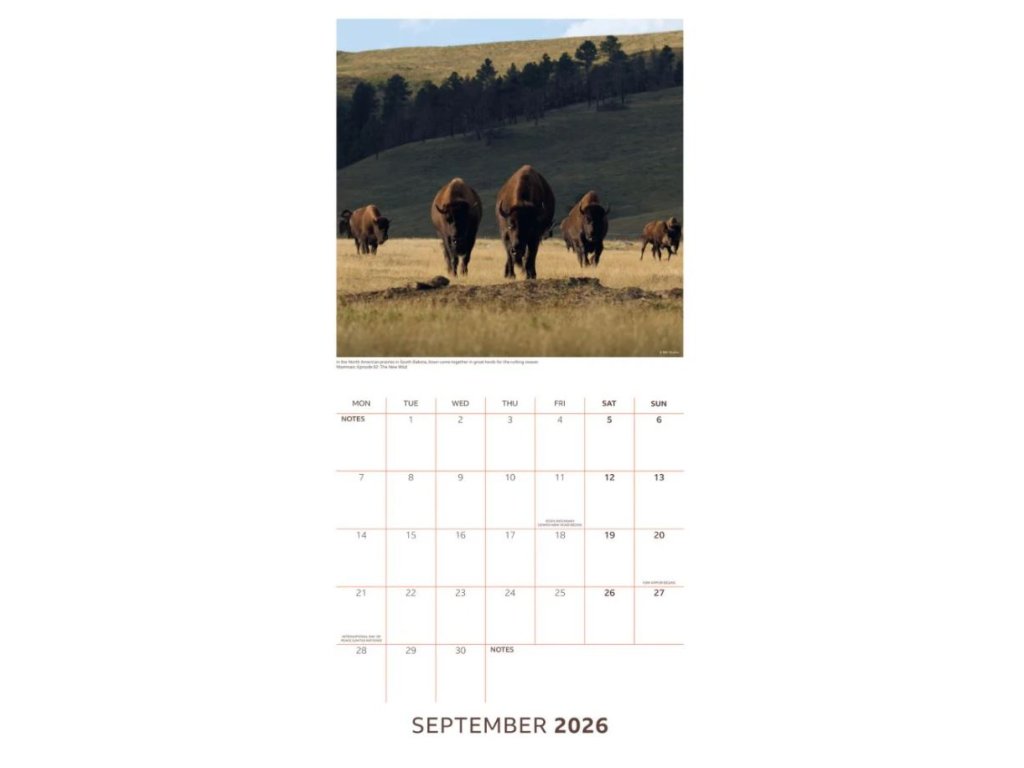 Oficiální nástěnný dvanáctiměsíční kalendář TV stanice BBC na rok 2026.