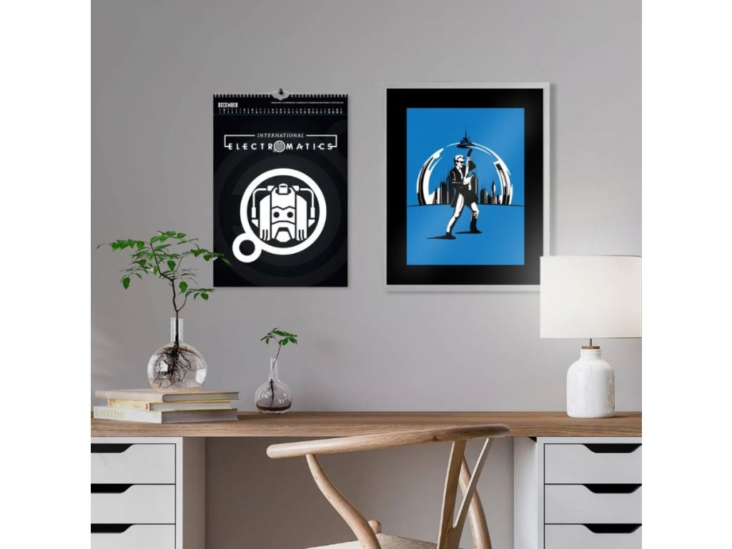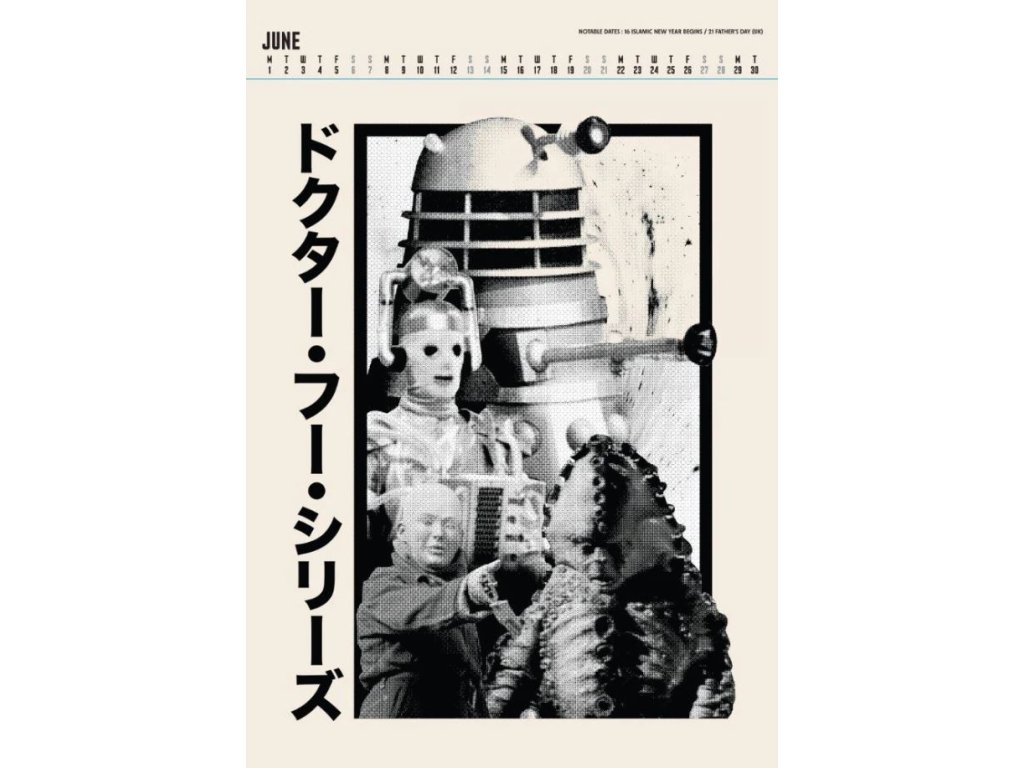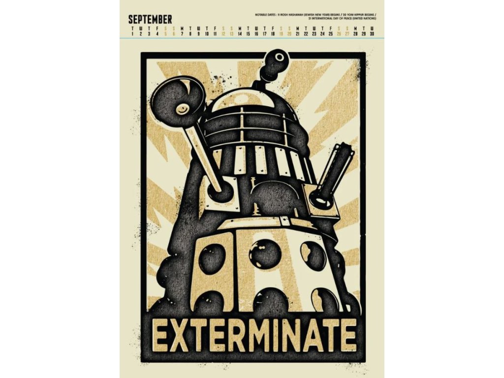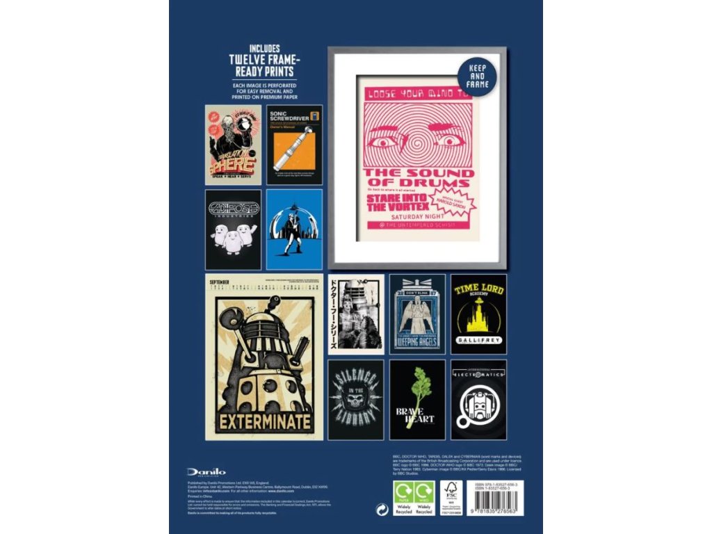 Exklusivní dvanáctiměsíční nástěnný kalendář A3 formátu (29,7 x 42 cm) s celkem 13 oficiálními plakátovými obrázky a fotografiemi seriálu Doctor Who.