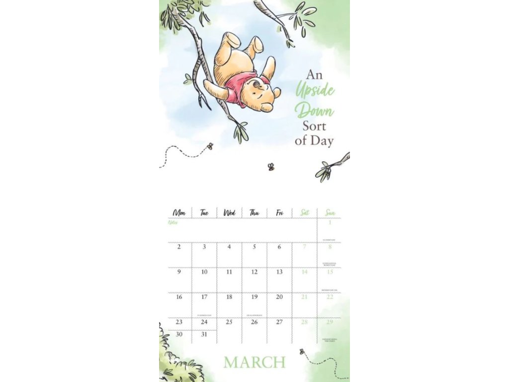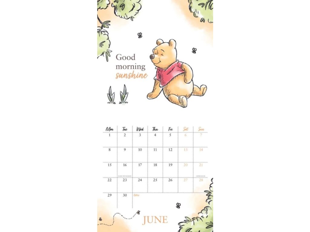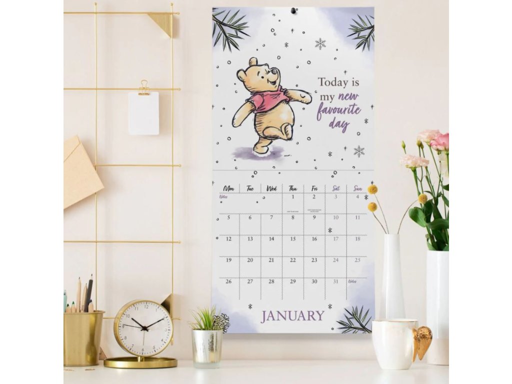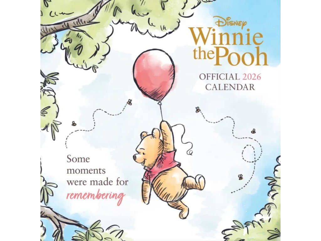 Oficiální nástěnný dvanáctiměsíční kalendář na rok 2026 s licencí populární kreslené pohádky Winnie The Pooh (Medvídek Pú) od Disney.