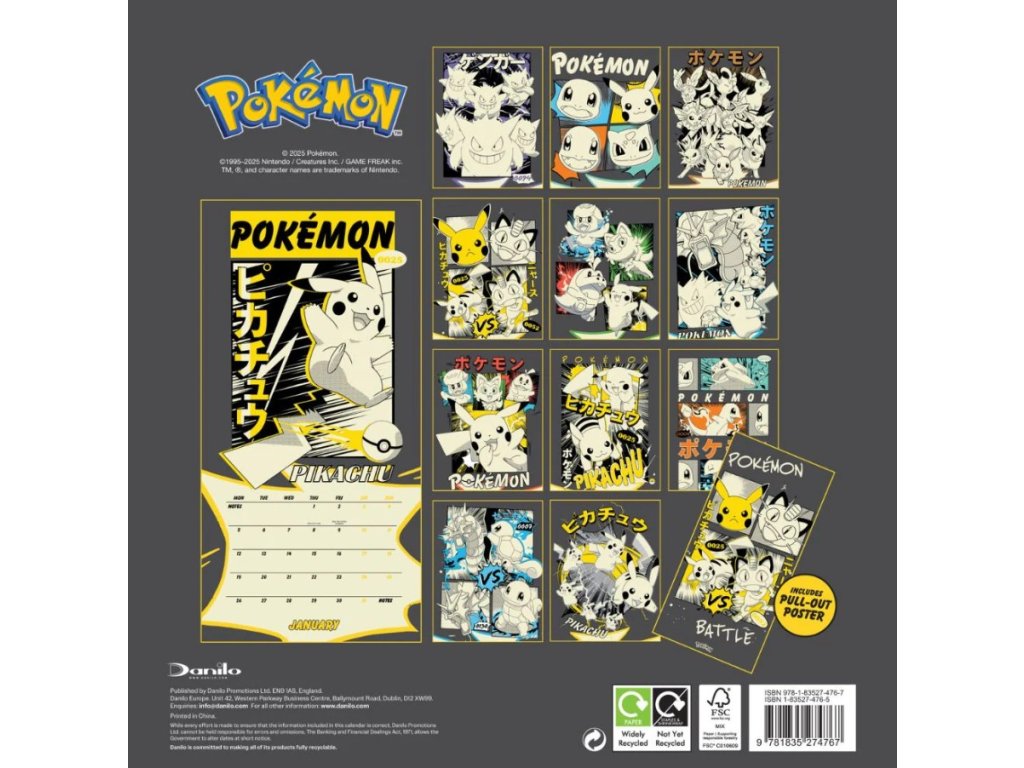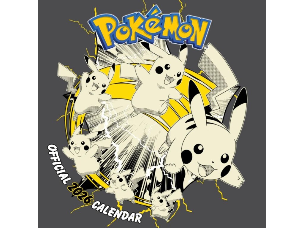 Oficiální produkt - dvanáctiměsíční nástěnný kalendář na rok 2026 s licencí japonské franšízy Pokémon.