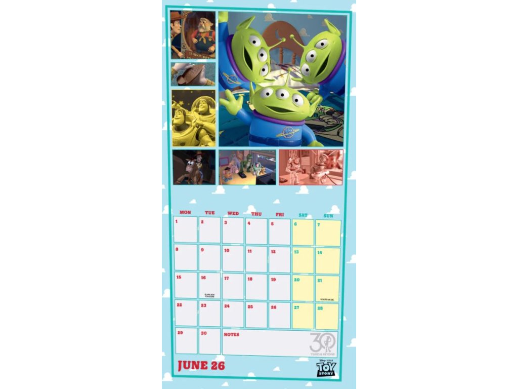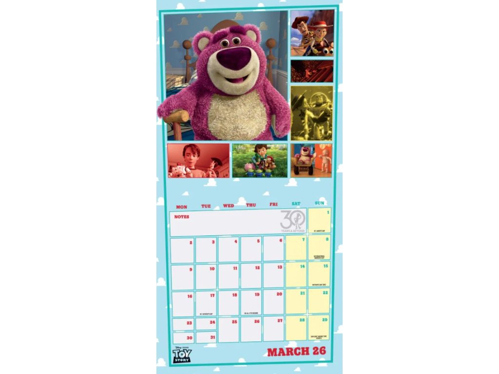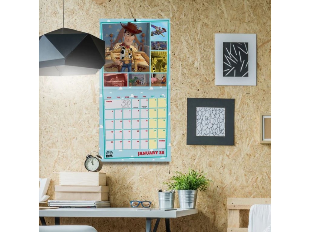 Oficiální produkt - nástěnný kalendář na rok 2026 s licencí slavné animované dětské pohádky Toy Story.