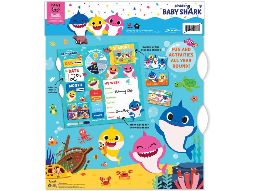 Oficiální produkt - nedatovaný dětský nástěnný kalendář s licencí animovaného videa Baby Shark.