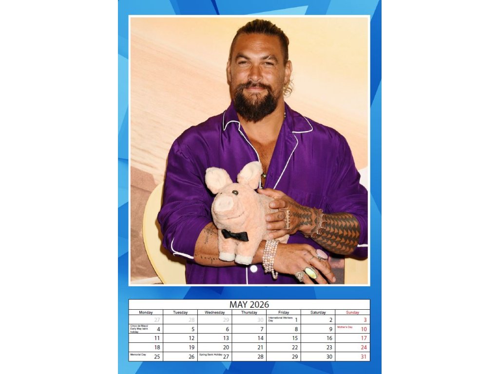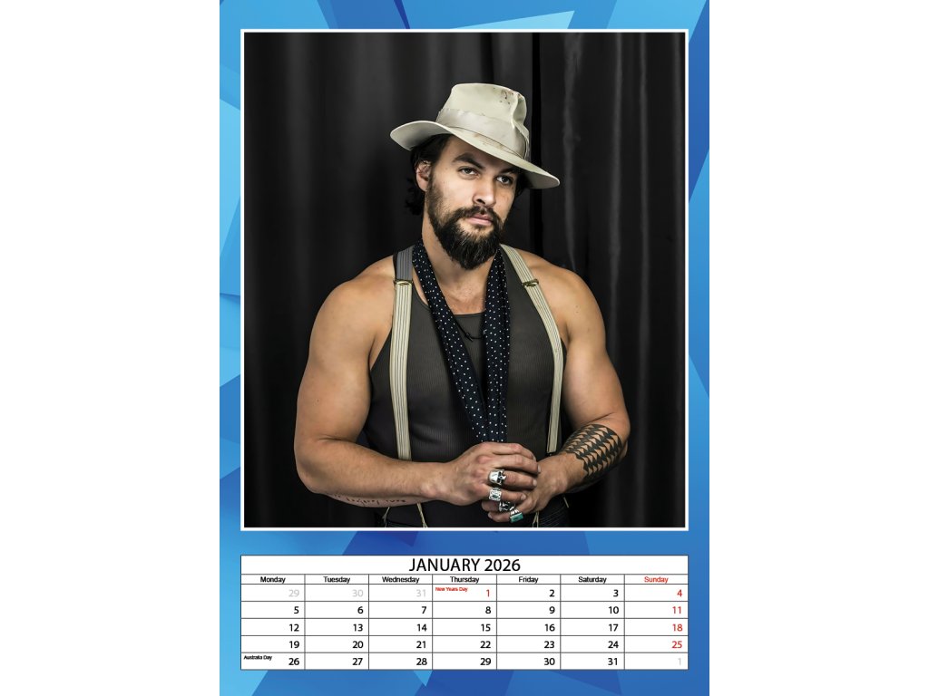 Oficiální produkt - nástěnný dvanáctiměsíční kalendář herce Jason Momoa na rok 2026.