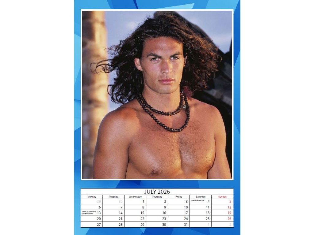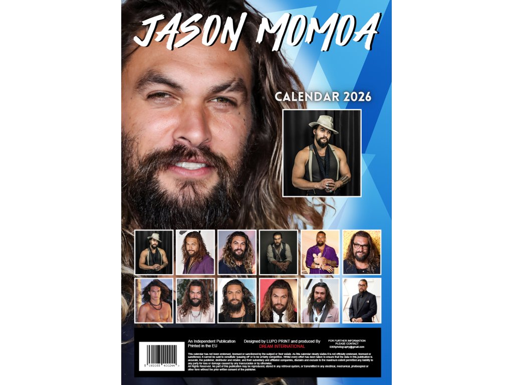 Exklusivní dvanáctiměsíční nástěnný kalendář A3 formátu (29,7 x 42 cm) s celkem 13 plakátovými obrázky a fotografiemi herce Jason Momoa.