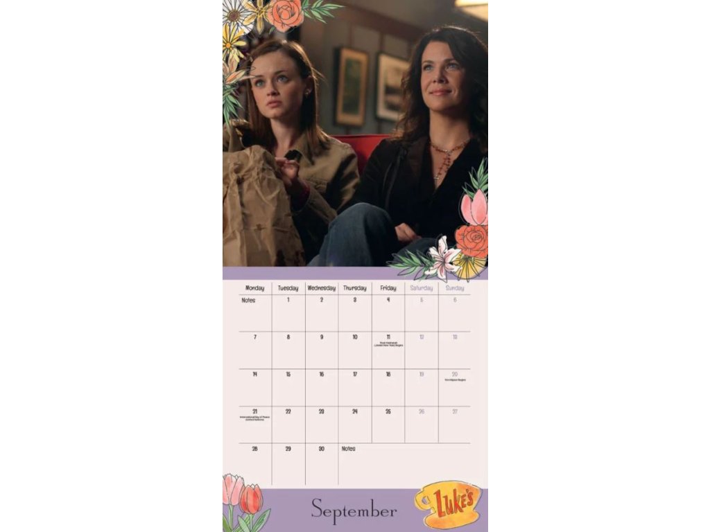 Nástěnný kalendář square formátu (30,5 x 30,5 cm) s celkem 13 fotografiemi ze seriálu Gilmorova děvčata.