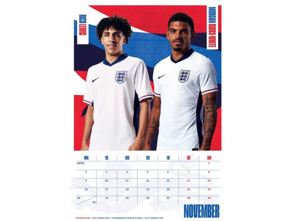 Oficiální nástěnný kalendář na rok 2026 s licencí britské fotbalové reprezentace.