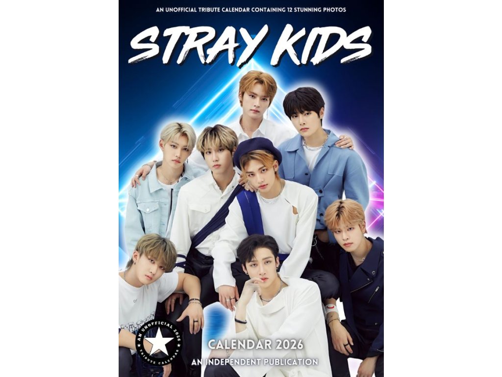 Oficiální produkt - exklusivní dvanáctiměsíční nástěnný kalendář na rok 2026 s fotografiemi populární hudební skupiny Stray Kids.