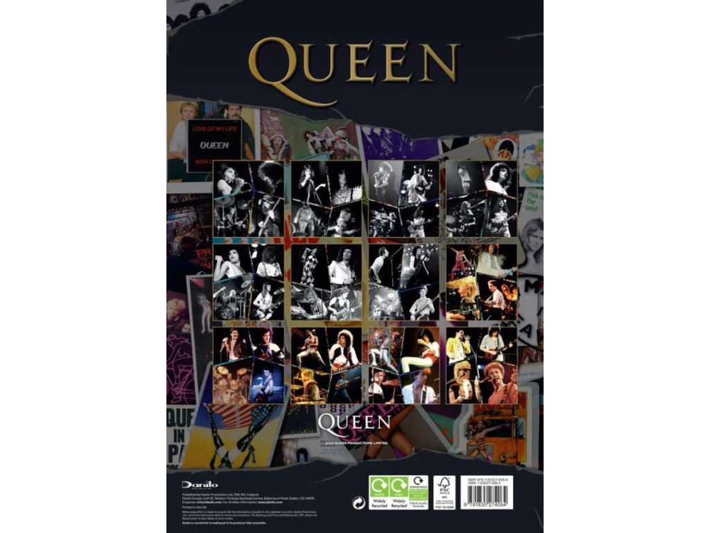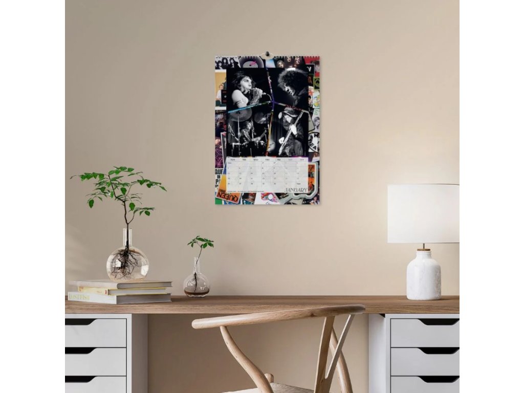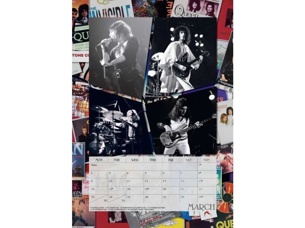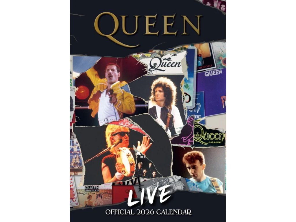 Oficiální produkt - nástěnný dvanáctiměsíční kalendář legendární britské hudební skupiny Queen na rok 2026.