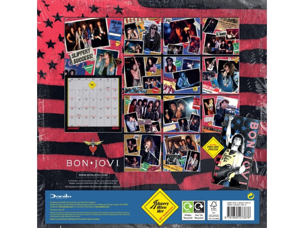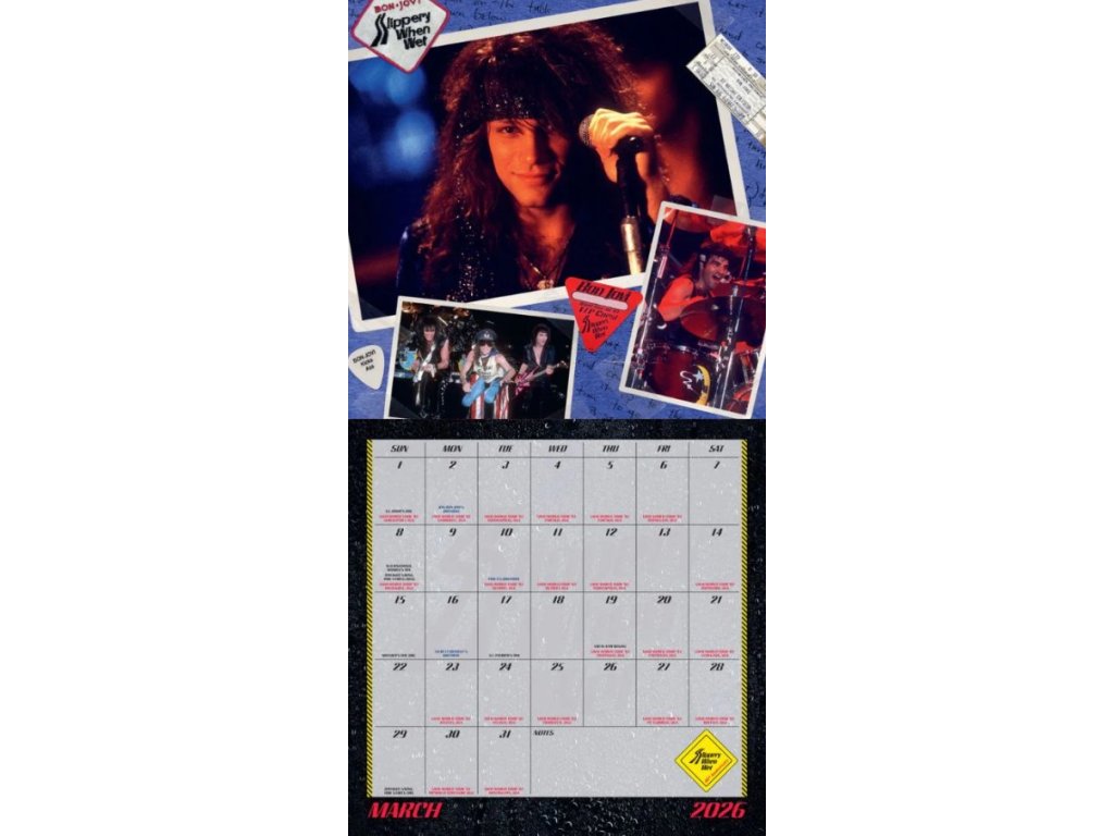 Oficiální produkt - nástěnný dvanáctiměsíční kalendář amerického rockového zpěváka Bon Joviho na rok 2026.
