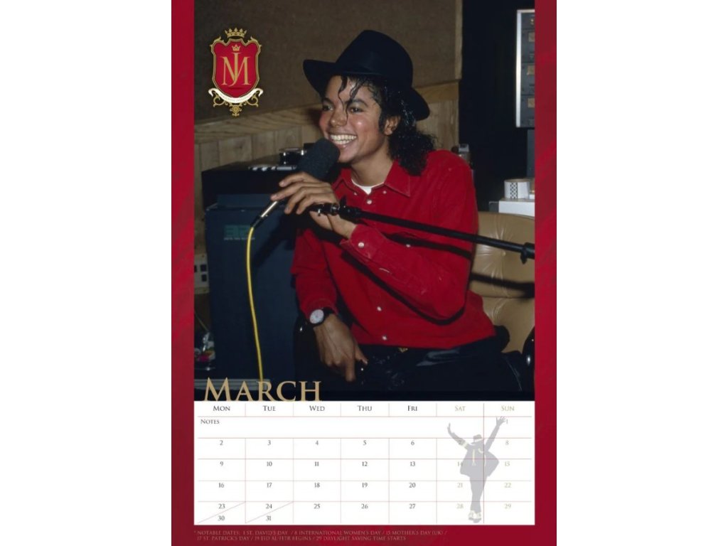 Oficiální produkt - nástěnný dvanáctiměsíční kalendář zpěváka Michaela Jacksona na rok 2026.
