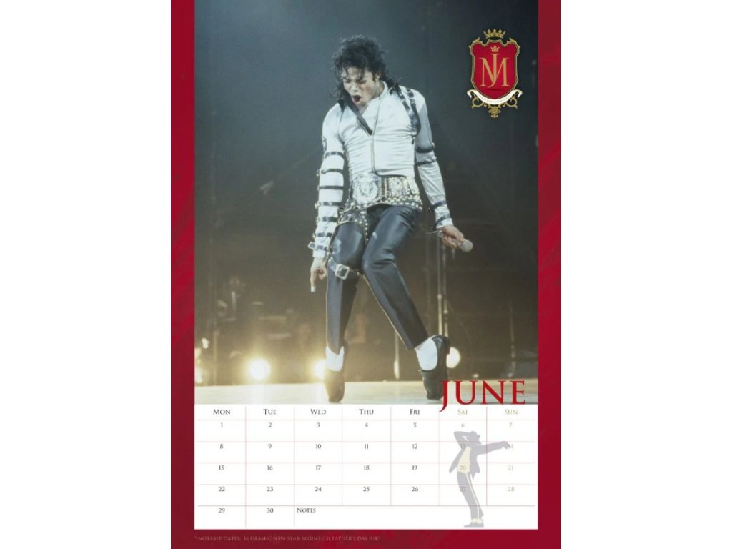 Dvanáctiměsíční nástěnný kalendář A3 formátu (29,7 x 42 cm) s celkem 13 oficiálními autorizovanými fotografiemi Michaela Jacksona.
