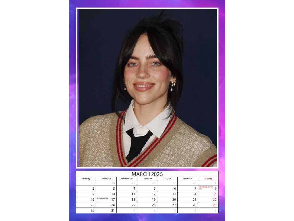 KALENDÁŘ 2026|HUDBA BILLIE EILISH (29,7 x 42 cm) A3
