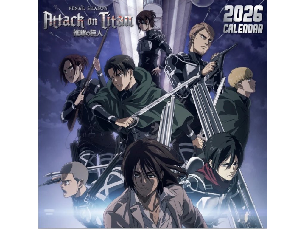 Oficiální produkt - nástěnný dvanáctiměsíční kalendář anime - manga licence Attack on Titan na rok 2026.