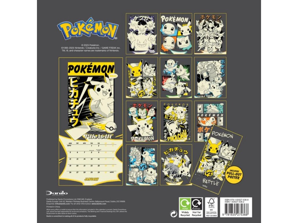 Oficiální produkt - dvanáctiměsíční nástěnný mini kalendář na rok 2026 s grafikou a licencí Pokémon.