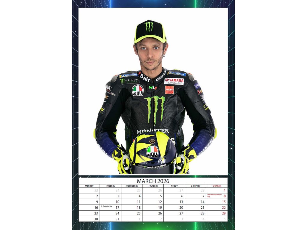 KALENDÁŘ 2026|MOTOR-SPORT VALENTINO ROSSI (29,7 x 42 cm) A3