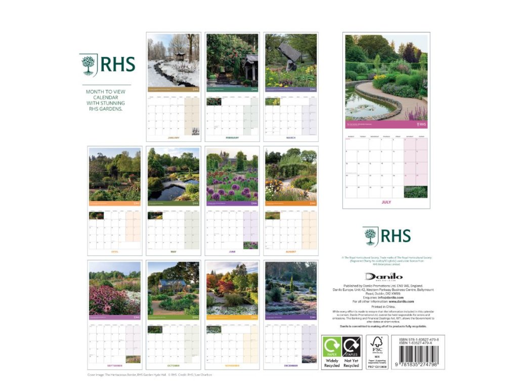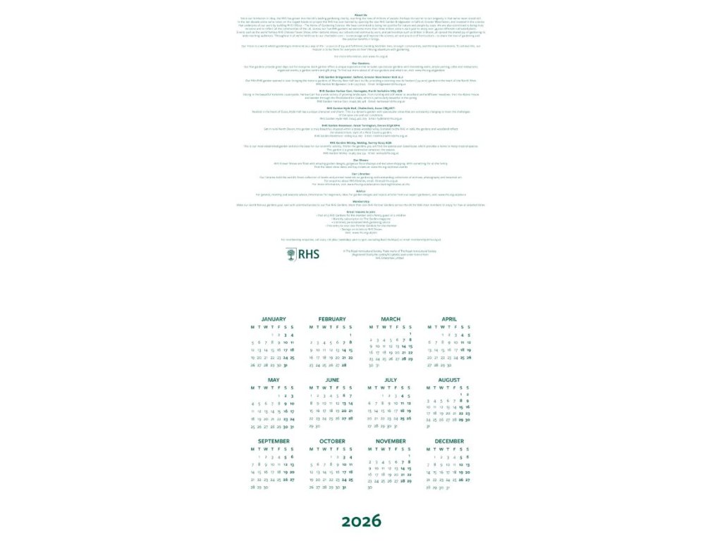 Oficiální produkt - dvanáctiměsíční nástěnný kalendář na rok 2026 s licencí zahradnické společnosti The Royal Horticultural Society.
