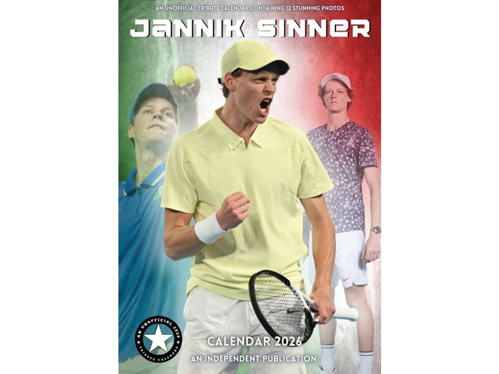 Oficiální produkt - exklusivní dvanáctiměsíční nástěnný kalendář na rok 2026 s fotografiemi populárního tenisového hráče Jannika Sinnera.